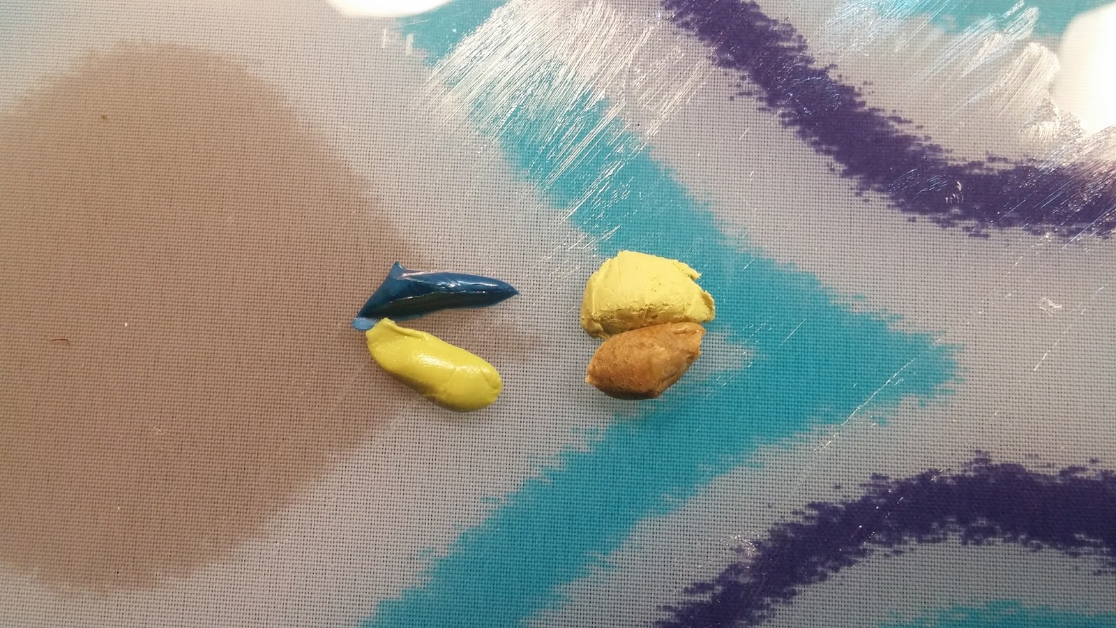 Mix them together for a light Green. You may have noticed that I coat the surfaces of stuff that comes into contact with the putty with Vaseline to keep it from sticking.